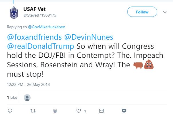 To paint an accurate picture I must also note that the majority of the tweets from veterans which we found mentioning Sessions by name from this long weekend were about the separation of immigrant children from their parents, but for the purposes of this article, which is to reflect on the effect of the DOJ on the health of the republic as a whole, we limited our reporting to posts pertinent to the integrity of the Justice Department and the ethicacy of the attorney general (or the lack thereof).